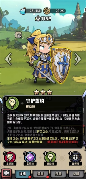 4、从一代的薇薇奶奶返老还童到二代的少女贞德,这是练了天山童老的不老长春功吗?作为一个只有防御能力的肉盾,前期超弱后期超神就是她的标签,可以称为整个游戏最硬的肉