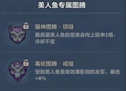 1、猫神图腾·项链:最高星美人鱼的圣泉会向上延申1格,冷却不变。