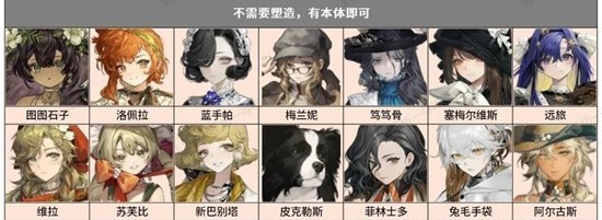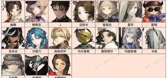 图图石子、洛佩拉、蓝手帕、梅兰妮、笃笃骨、塞梅尔维斯、远旅、维拉、苏芙比、新巴别塔、皮克勒斯、菲林士多、兔毛手袋、阿尔古斯、曲娘、槲寄生、J、洁西卡、爱兹拉、葛天、星锑、百夫长、冷周六、库珀花环、乌尔里希、莫莉德尔、玛丽安娜、卡戎、马库斯、未锈铠、卡珊德拉