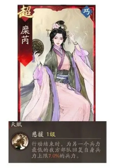糜芮:虽然不增加谋攻,但是往往提供的防御类属性可以让貂蝉挨住一次攻击不被秒,回合结束回复己方单位也算是锦上添花。