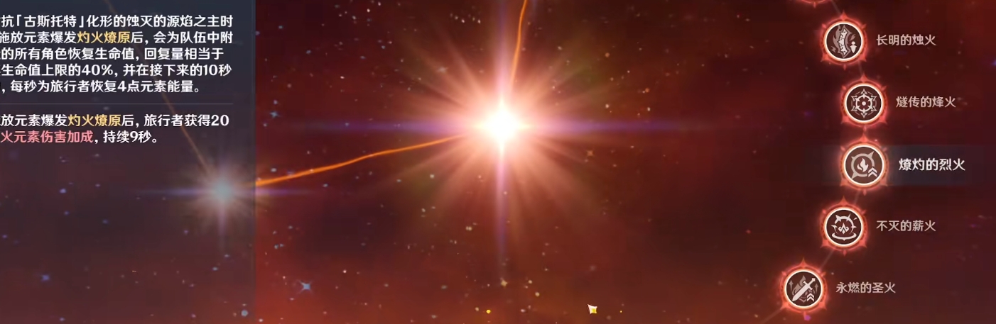 4命在施放元素爆发后,提供20%的火元素伤害加成。该效果很可能服务于6命的机制,整体增伤效果显著,提升了输出的潜力。5命与3命类似,主要提高元素爆发的等级,仅增加技能数值,缺乏机制上的改变,因此提升幅度较为有限。