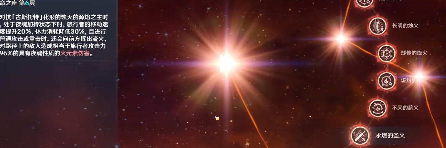 2命的效果为:在元素战技持续期间12秒内,队伍中所有角色触发与火元素相关的反应(如蒸发、融化、燃烧)时,会为旅行者恢复14点夜魂值。每次施放元素战技最多可触发两次,即总共恢复28点。这一命座显著提高了夜魂的积累效率,实用性较高。3命则提升元素战技等级3级,虽然能提高一定的输出,但整体增幅并不明显,同时将元素战技等级上限提高到15级,这一点需特别注意。