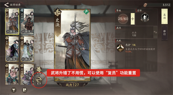 注:副将也不要怕升错了浪费资源,因为副将是可以“无限复员”的,资源全部返还,所以也不用担心养错了一说。