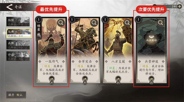 2.兵贵神速,一些需要赶时间的关卡需要用到,是仅次于一鼓作气重要的奇谋