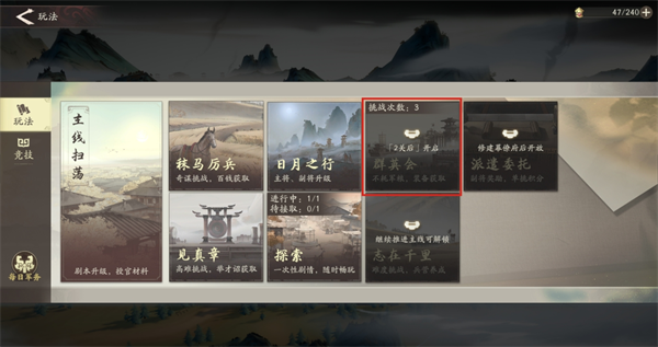 4.群英会开启之后,后期的装备来源就都在群英会里面获得了,遇到推不动的关卡时,就去这里推一推,更新一下装备再去挑战。