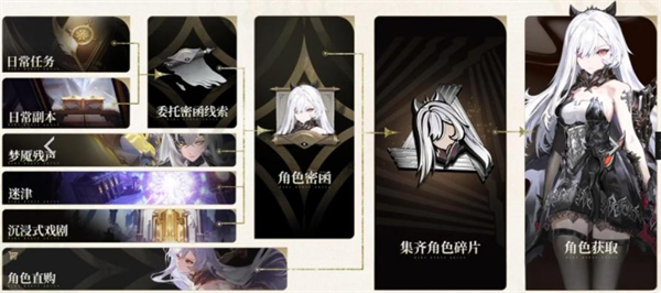 1、商城密函线索兑换日常副本、任务等得密函线索,10个换1份指定角色密函,刷密函副本稳拿对应碎片。覆盖多数常驻角色,适合定向养卡。