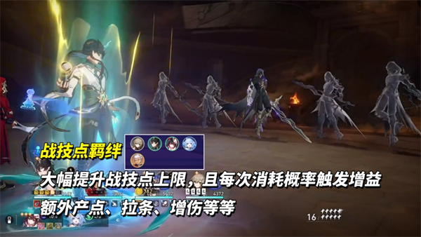 ⑤战技点——青雀、饮月、花火、刻律德菈、Archer。提高队伍战技点上限,并且每次消耗战技点会进行抽奖,获得增伤、恢复战技点、立即行动等等增幅。这很欢愉。