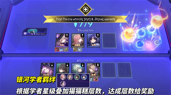 ⑥银河学者——艾丝妲、黑塔、阮梅、真理医生、大黑塔。依据学者成员的星级,叠加猫猫糕层数,达成一定层数会产出奖励。越早解锁越香的羁绊。