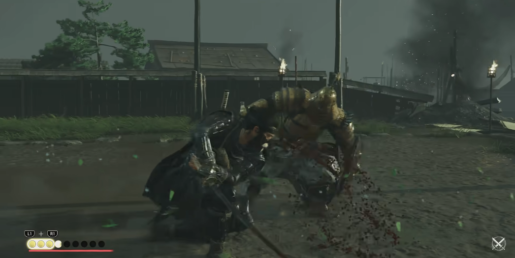 特别注意他的跳劈攻击,地面会出现尘土特效,看准时机向右闪避可触发“天之一刀”的反击。最后追击阶段需登上屋顶,长按奔跑键不停移动。发现战场烟雾时,往高处寻找,他通常蹲在旗杆附近,跳下触发终结时要连按△键,否则会被反杀。战斗结束后不要松懈,立即按下键补血,因为紧接着还有连续战斗。