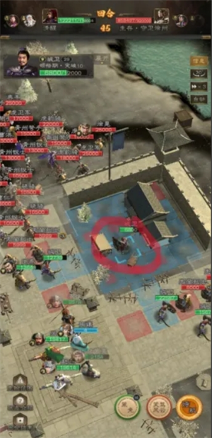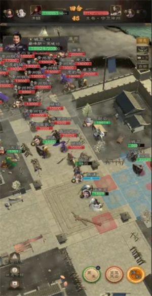5.后面便一路“回合结束” 直到第 四十五回合,期间诸葛可以用“再动” 给所有人补一补血,看哪个武将要残血了,用其他武将 / 城卫顶替一下。(注意:优先确保诸葛的 “再动” 技能在46 回合 处于可用状态)。