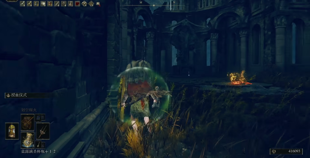 需注意:前往教堂途中需穿越废墟区,存在埋伏于断墙后的火焰弓手,建议贴左侧山壁前进,发现火光时先投掷石块引怪再近身处理。若角色等级低于80级,建议提升火焰抗性——穿戴熔炉骑士甲或使用火焰庇护祷告,将火抗堆至40%以上可避免被火墙秒杀。