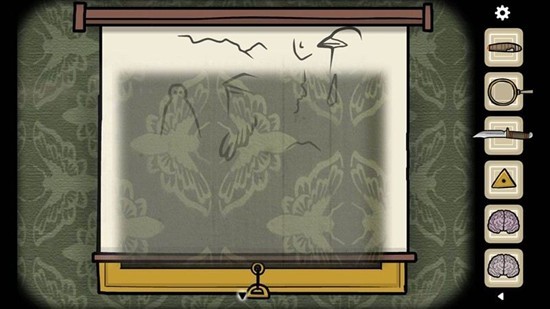 关于第二张胶片的观察方法,打开放映机后进入胶片观察界面,来到壁画位置会看到投影画面,拉下帘子后会出现一些抽象图形。