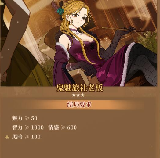 2、鬼魅旅社老板3星:魅力≥50、智力≥1000、情感≥600、黑暗≥100。