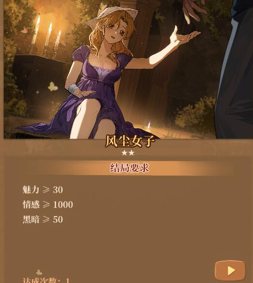 3、风尘女子2星:魅力≥30、情感≥1000、黑暗≥50。