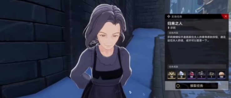 在选完之后就可以领取归来人的任务,不要着急走,可以先聊几句。留意一下他身上穿的衣服,因为在这任务里面有一个小彩蛋,你在对话的时候只需要说一句,你的衣服真漂亮,就可以获得功力值。这就等同于是一个白嫖的属性加成,因此不要错过。接下来自然就是收集的环节,打开任务追踪之后就能看到废矿点的定位,在旧矿道的入口跟着导航走,马上就能够找到。