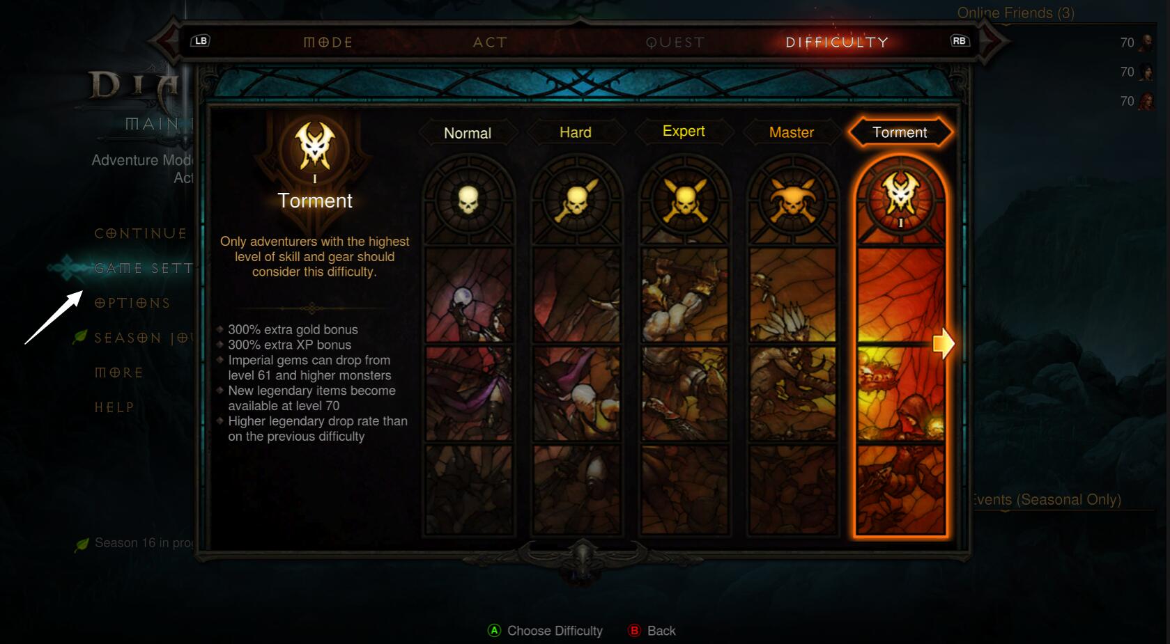 在登录接口中,游戏设置选项和最右边的选项卡可以切换难度