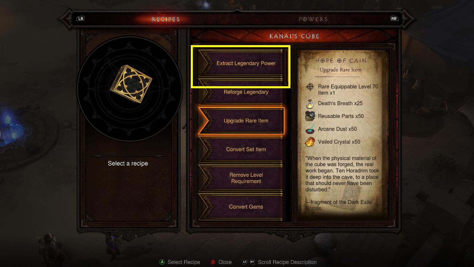11。使用Kanai魔术盒提取一件传奇的设备。使用您只需要提取设备的奖励材料。
