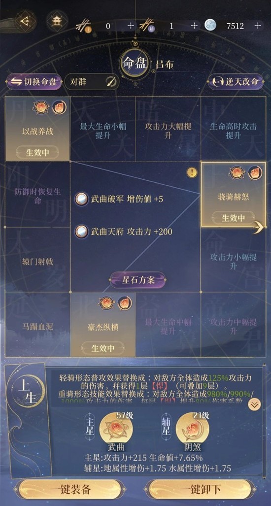 单体盘的话大家可以搜搜别人打的顺序,我之所以用群攻盘是因为他们任何一个死了,后面的人伤害都挺高感觉,不小心把阿婵或者辽哥打死了,那就直接完蛋了,辽哥死之前貌似还会打你一巴掌那种,一星吕布承受不来