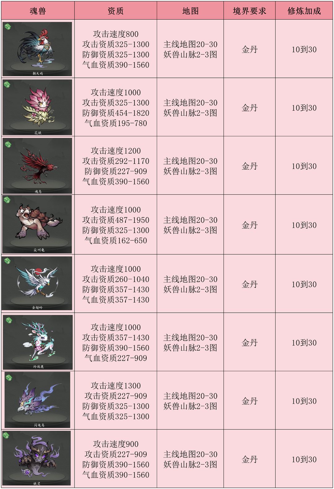 魂兽我认为也没有太高的培养价值,同样在金丹期内,也可以养几个资质及成长好的,最终还是当坯子及狗粮,主要还是看技能格子数量,为以后灵兽及仙兽做储备。
