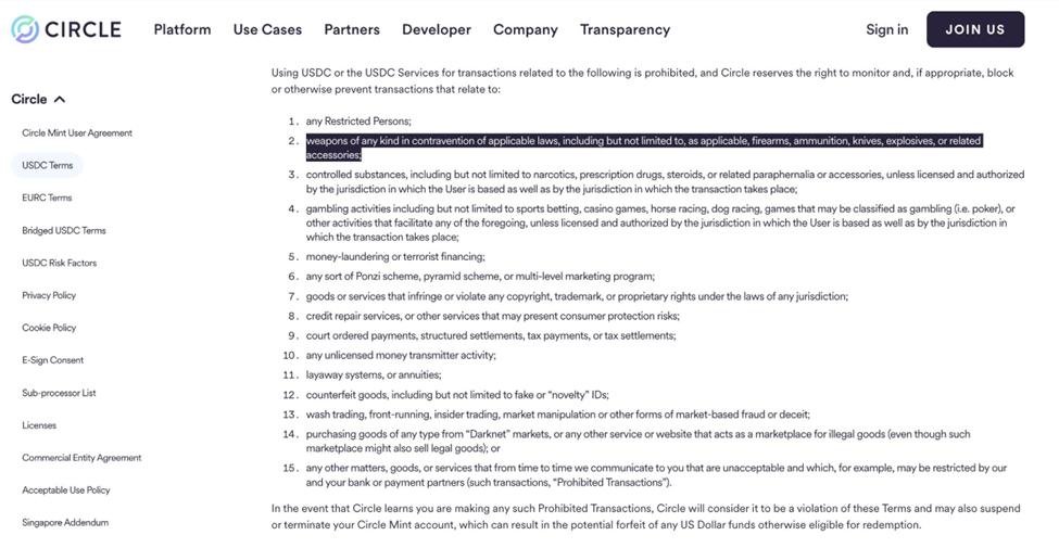 在行业倡导和公众关注下,Circle修订条款,仅禁止"违反适用法律"的武器销售。