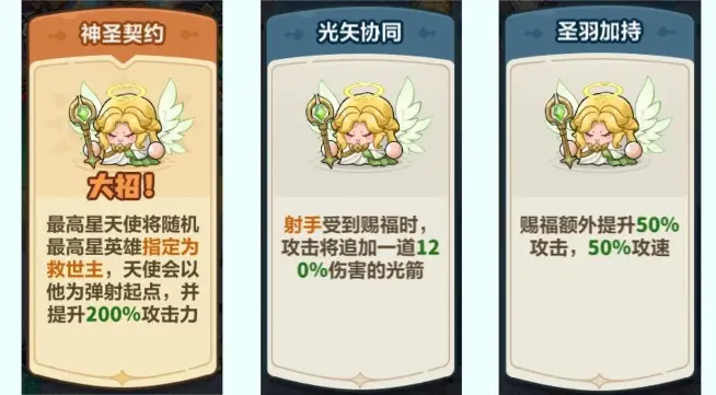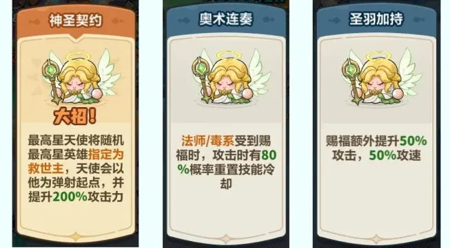 辅助,阵容内铁打的存在!天使凭借其强大的增益能力,可灵活适配多种阵容。下面推荐天使在主线关卡中,搭配法师、射手、法师三类核心输出的搭配组合,关于输出英雄的具体词条、图腾披风等可参考往期的英雄档案。