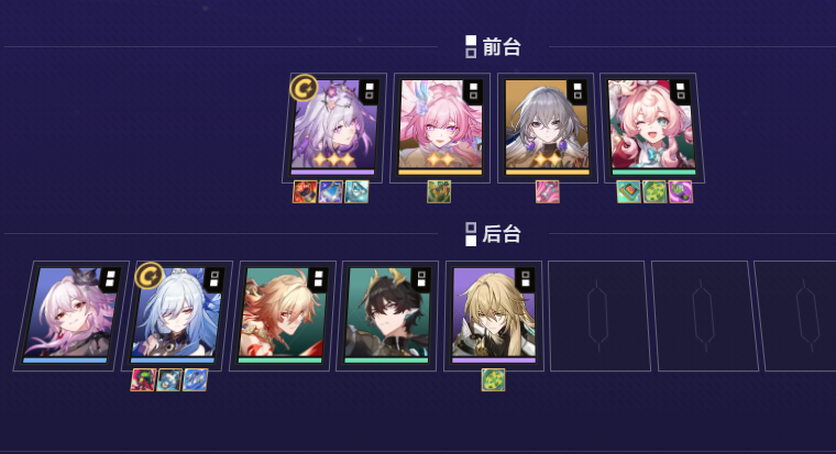 最终阵容组成:遐蝶、昔涟、布洛妮娅、风堇、长夜月、镜流、万敌、丹恒·腾荒、罗刹