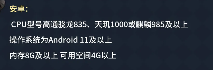 A:※设备要求:低于下面要求的设备将无法进入游戏,请下载前先确认机型是否匹配※