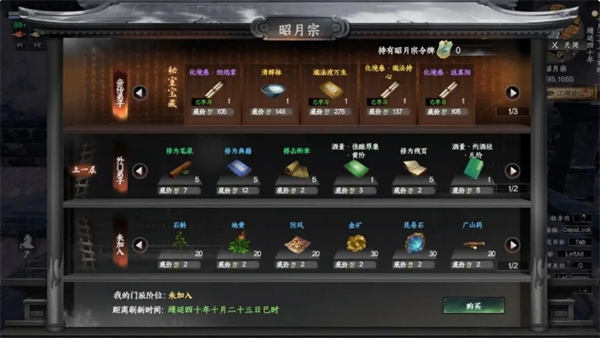 获取方式:昭月宗1695.1665关门弟子兑换,右边事务总管可以加入门派