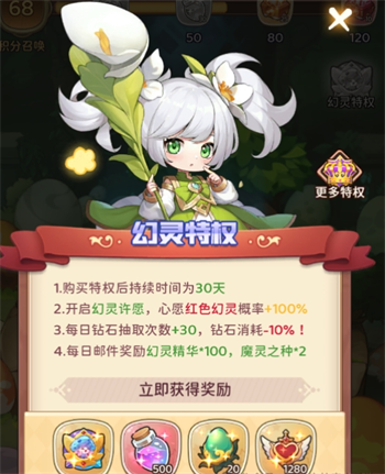 魔灵之种获取途径:幻灵特权、领主讨伐、钻石礼包、每周充值礼包