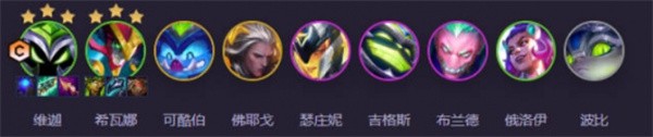 行动英雄:维迦(核心输出)、希瓦娜(主坦克)、库库布、福耶戈、瑟庄妮、吉格斯、布兰德、俄洛伊、波比