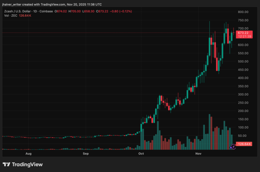 今年以来涨幅突破1500%,过去一个月暴涨175%之后,这款以隐私为核心的加密货币正在测试关键看涨突破形态,交易者纷纷猜测后续走势——ZEC能否真正延续这股势头?
