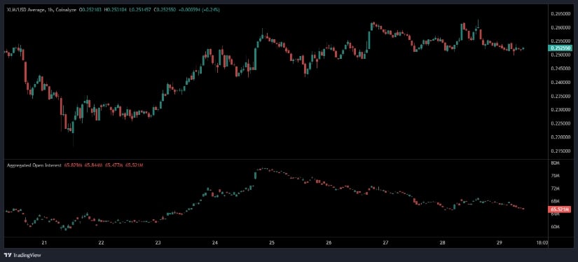 未平仓合约动能衰减,XLM于0.252美元附近盘整