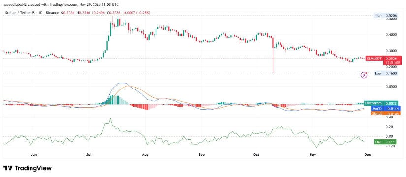 恒星新闻 2025:随着未平仓合约减少,XLM价格维持在0.25美元