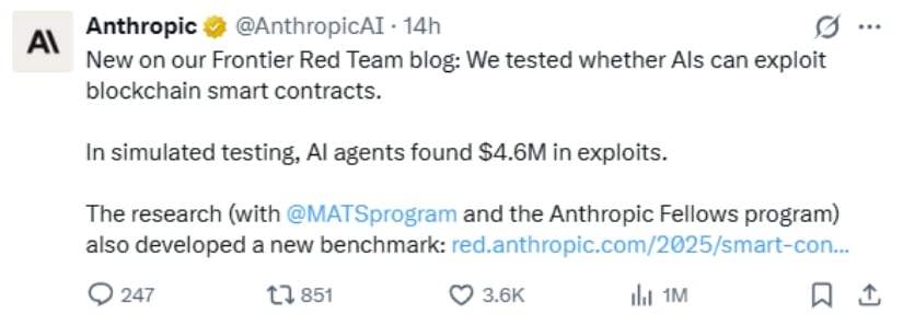 人工智能已达到一个危险的新里程碑。Anthropic发布的开创性研究表明,AI系统如今能发现并利用区块链智能合约中的漏洞,这些合约价值数百万美元。