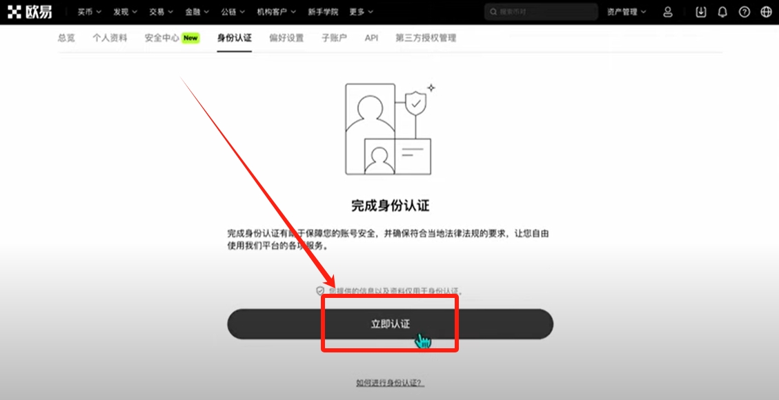 这时候它就直接给我们跳转到了身份认证的页面,我们点击【立即认证】。