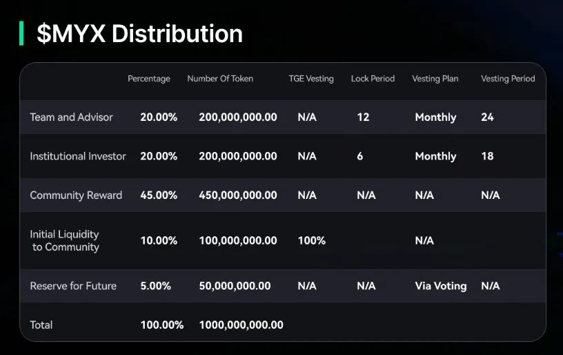 MYX代币总量10亿枚,分配方案体现长期发展理念:
