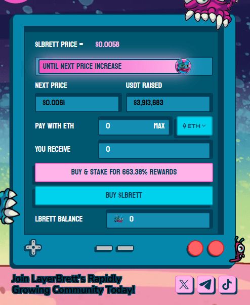 在加密货币领域,一个名为Layer Brett ($LBRETT)的新兴项目正引发热议。作为以太坊Layer 2上的meme币,它凭借闪电般的交易速度和663%的超高质押年化收益脱颖而出。目前预售阶段已筹集400万美元,代币价格仅0.0058美元,其独特的技术架构与社区驱动模式让投资者期待它在2025年牛市中的表现。