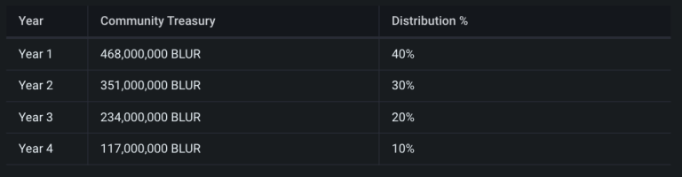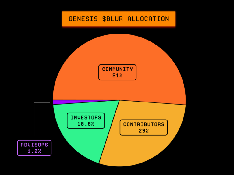 2023年2月15日推出的BLUR代币总量30亿枚,分配方案如下:51%归属社区,29%分配给核心团队,19%面向投资者,1%预留顾问。首次空投发放3.6亿枚(占总供应12%),剩余39%将在四年内通过激励计划逐步释放。