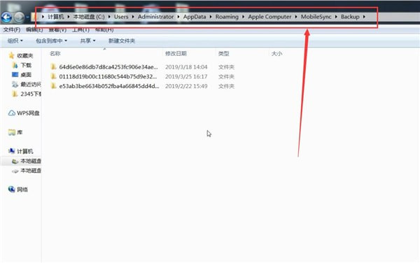 第二步、点击Users文件夹,选择administrator文件夹,点击AppData文件夹,选择Roaming文件夹,点击Apple Computer文件夹,选择MobileSync文件夹,点击Backup文件夹,即可查看所有备份文件了。