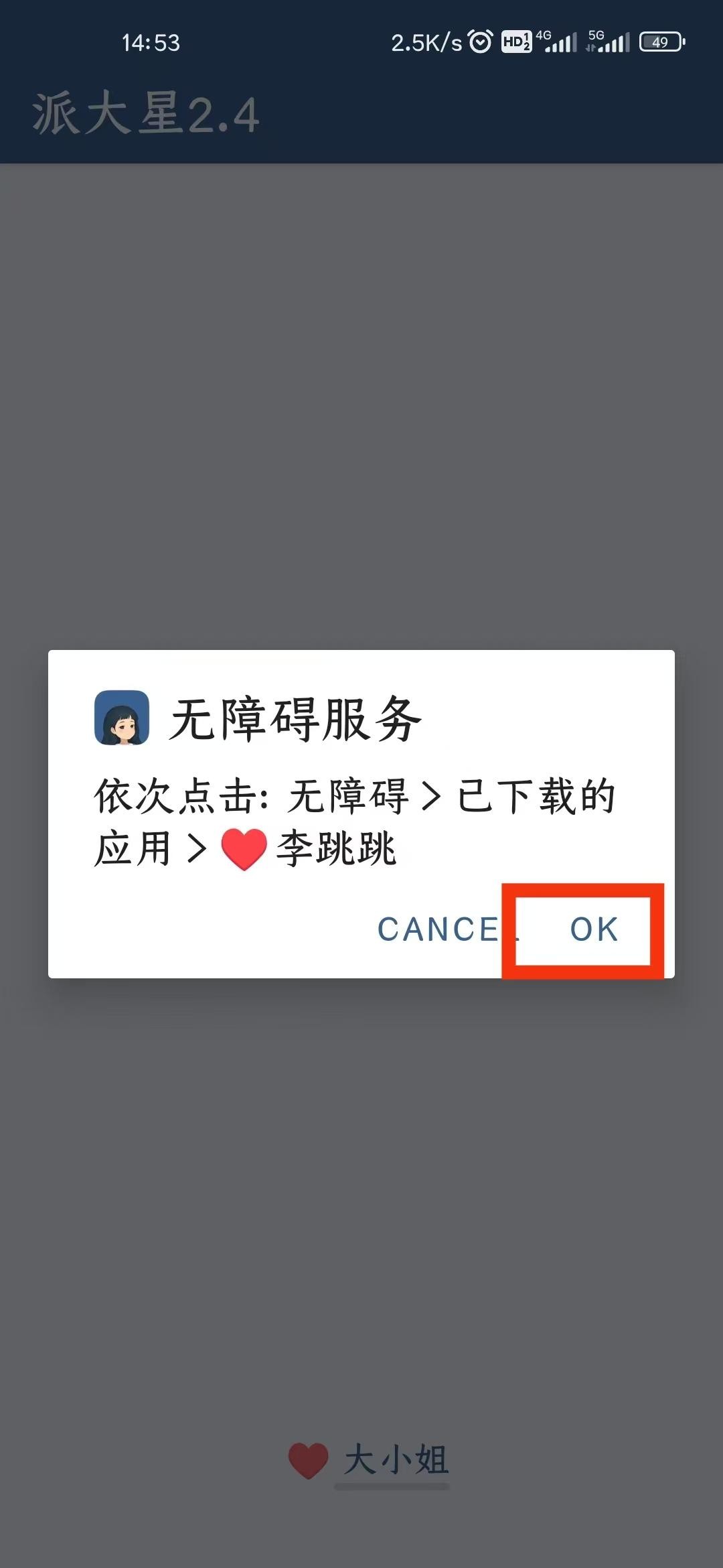 开启李跳跳的无障碍权限。