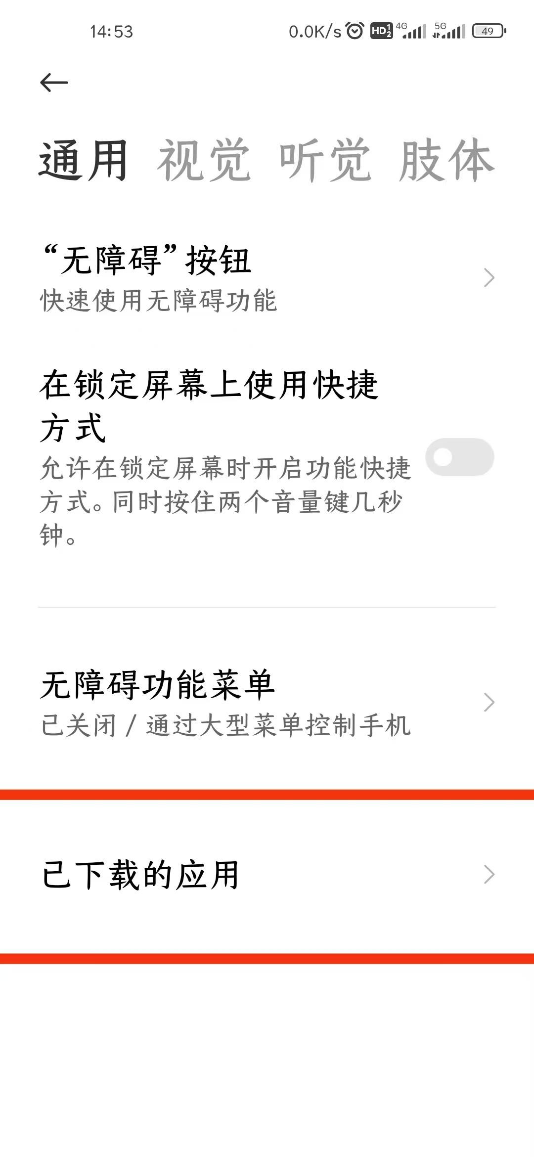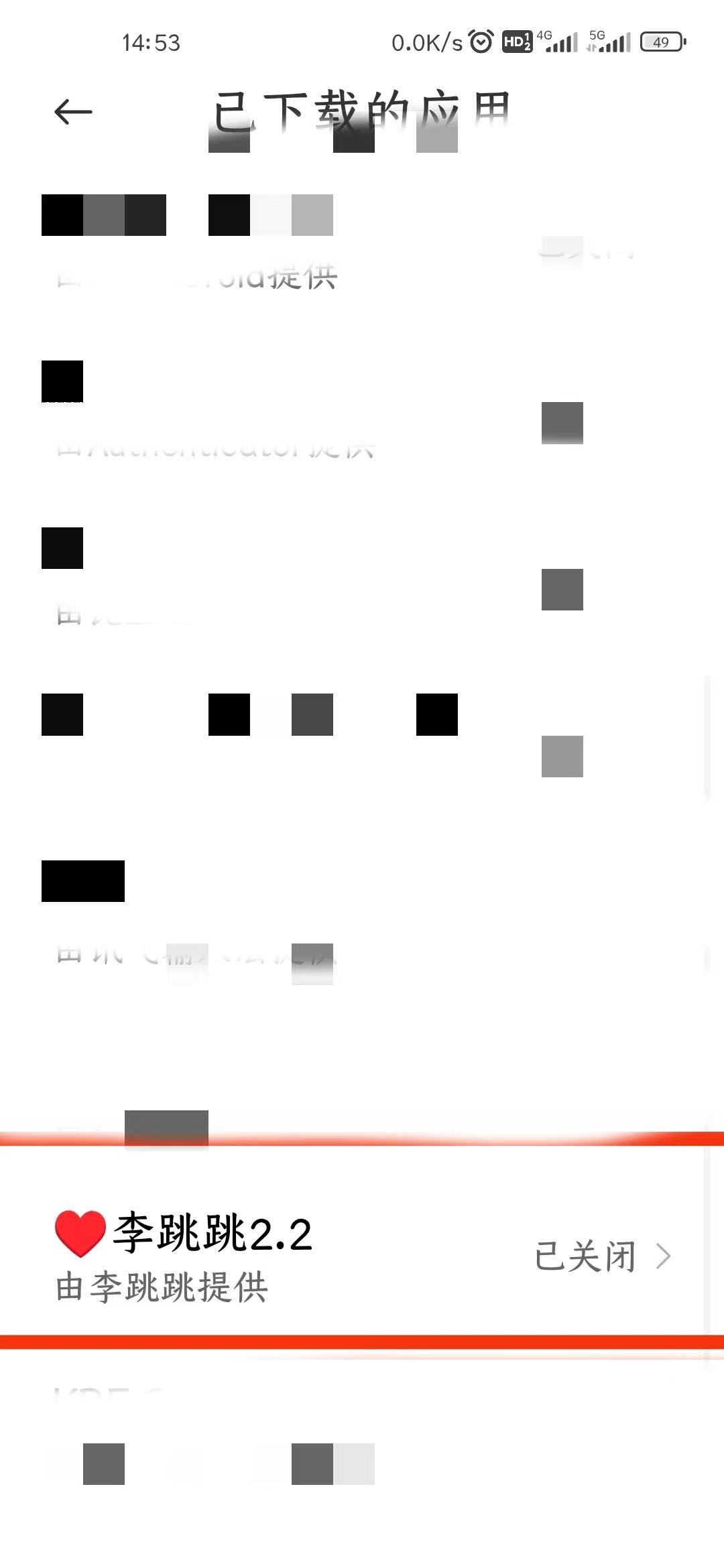 此时,跳转到手机无障碍设置,在已下载应用里,找到李跳跳。