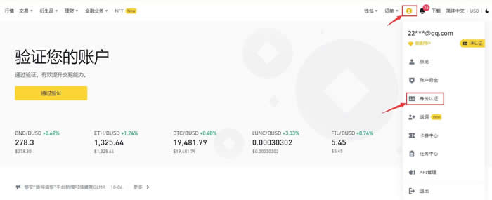 4.登录后进入用户中心完成身份认证,不同认证级别对应不同交易限额