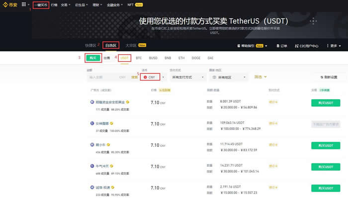5.通过一键买币功能选择USDT进行兑换,这是购买LTC的必要准备步骤