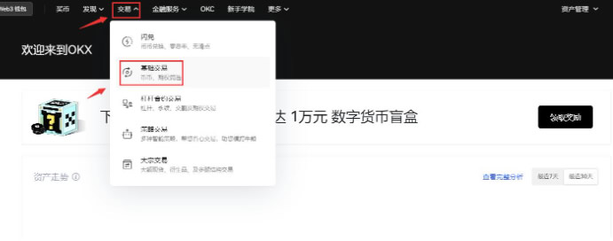 4.登录后进入"交易"-"基础交易"界面,准备进行LTC购买操作。