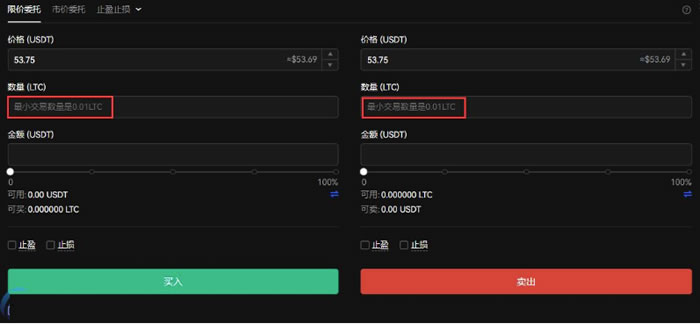 6.输入购买数量(最低0.01 LTC),确认交易信息后完成购买。