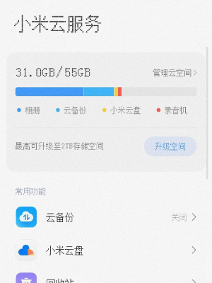 4、进入小米云服务界面,我们可以根据需求进行设置。