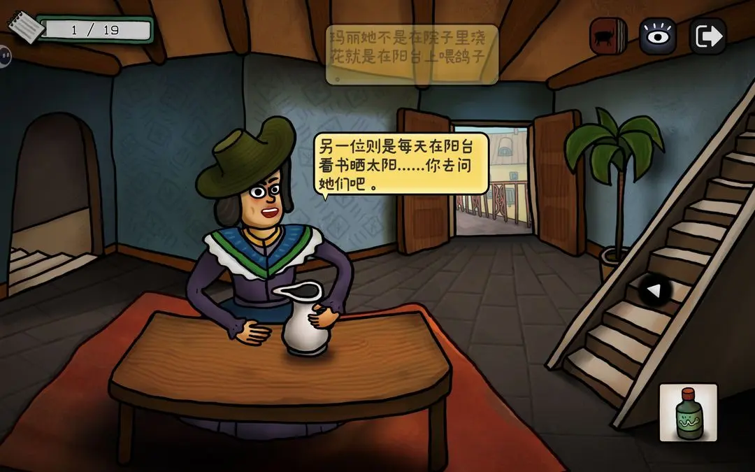 17、去屋顶喂鸽子,捡起蓝颜料,点击5次鸽子,解锁【和平鸽不平和】成就