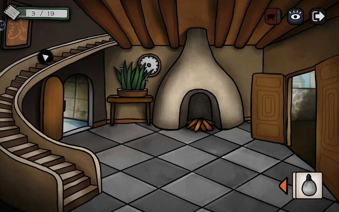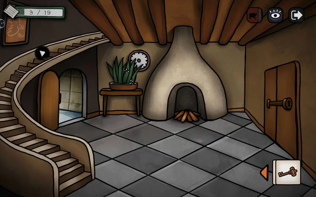 14、拿走空牛奶壶,浇灭壁炉,取钥匙,再用钥匙打开右边的锁
