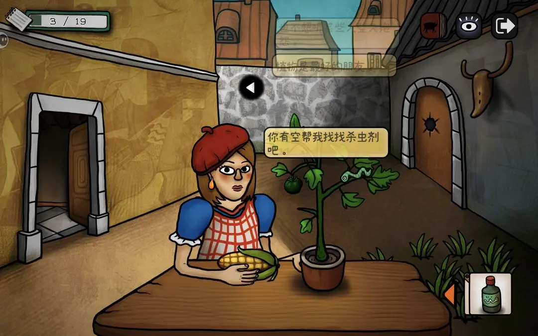 15、点击进入院子,和女孩对话,把杀虫剂给女孩,结出西红柿