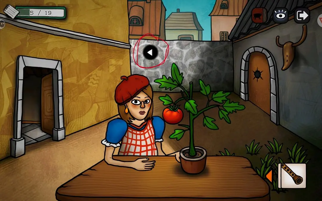 20、去院子里,点击玛丽身后的小路,再次看到公牛,把蜡笔给它